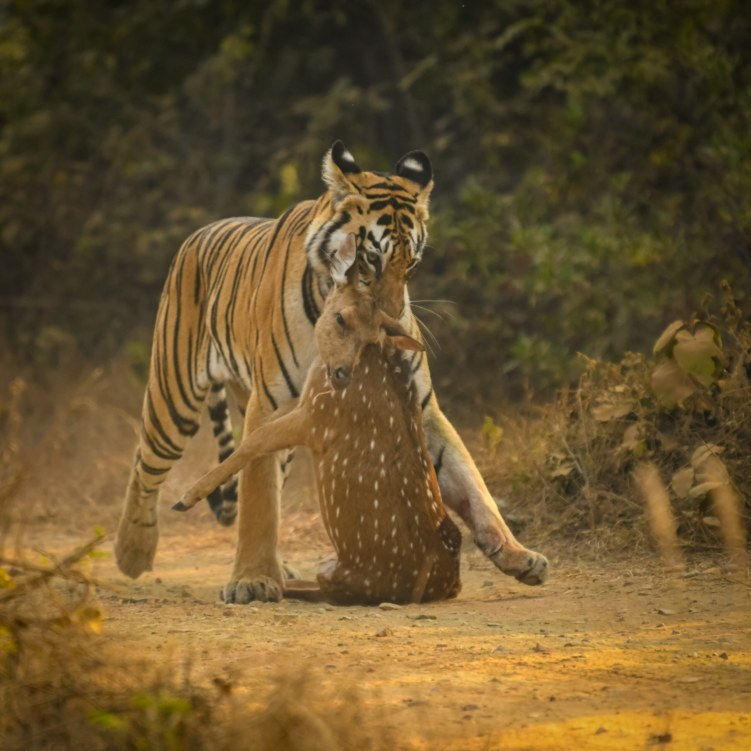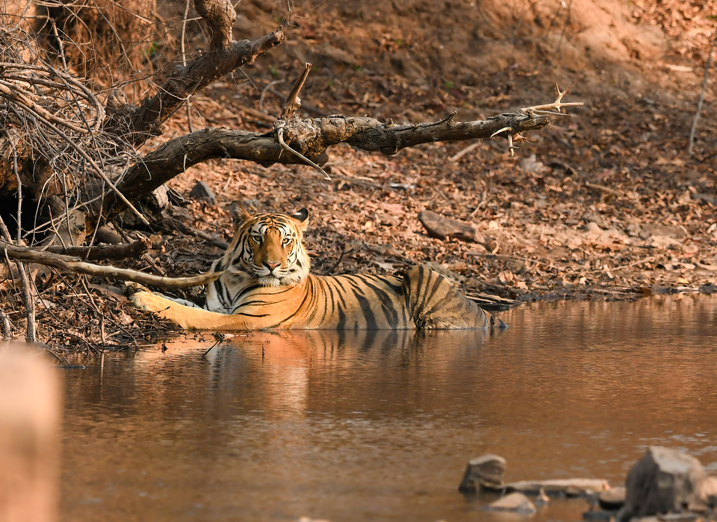 Ganesh (T-120) is a popular, bold male tiger in Ranthambore National Park. He is the grandson of the famous tigress Krishna (T-19) and the son of T-63, Chandra. He roams in zones 2, 3, and 4, attempting to establish his own territory.